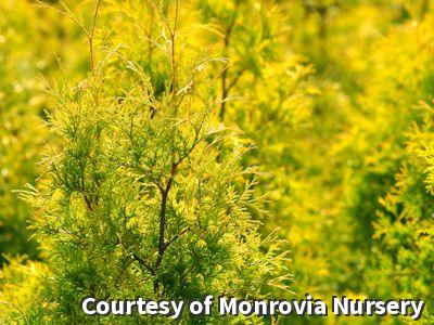 A distinctive evergreen with showy, dense golden-yellow foliage that maintains its color throughout the year. Thrives in humid conditions. Works well for borders, a privacy screen, or any place where brilliant color is needed.