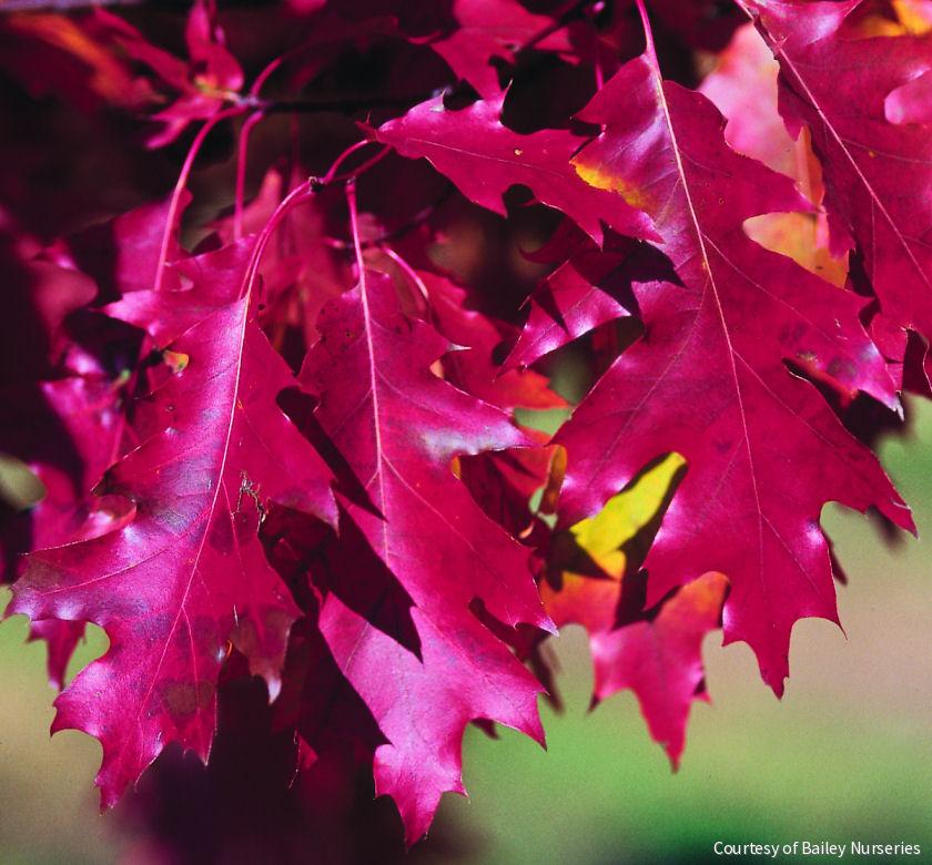 A popular, fast growing, native oak with glossy, dark green leaves that turn shades of bronze and russet red in the fall. Often, retains some foliage through winter adding its interest. Enjoys acidic sites.