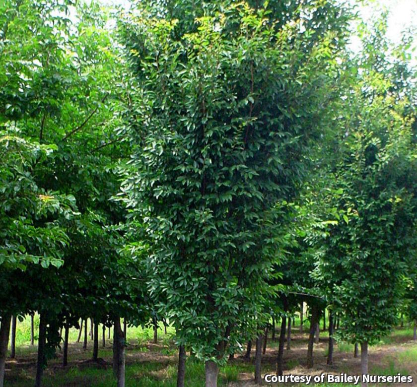 A unique Zelkova with a very columnar form that is suited to tight spaces. The attractive finely textured green foliage turns rusty red in fall. Use as an accent tree or plant in groups as a screen.
