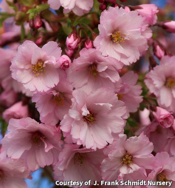 A narrow variety with showy, double pink flowers. The foliage is disease resistant looks good all summer and turns bright orange to orange-red in the fall. It narrow size allows for placement in smaller spaces. Use it as an accent tree or plant in groups.