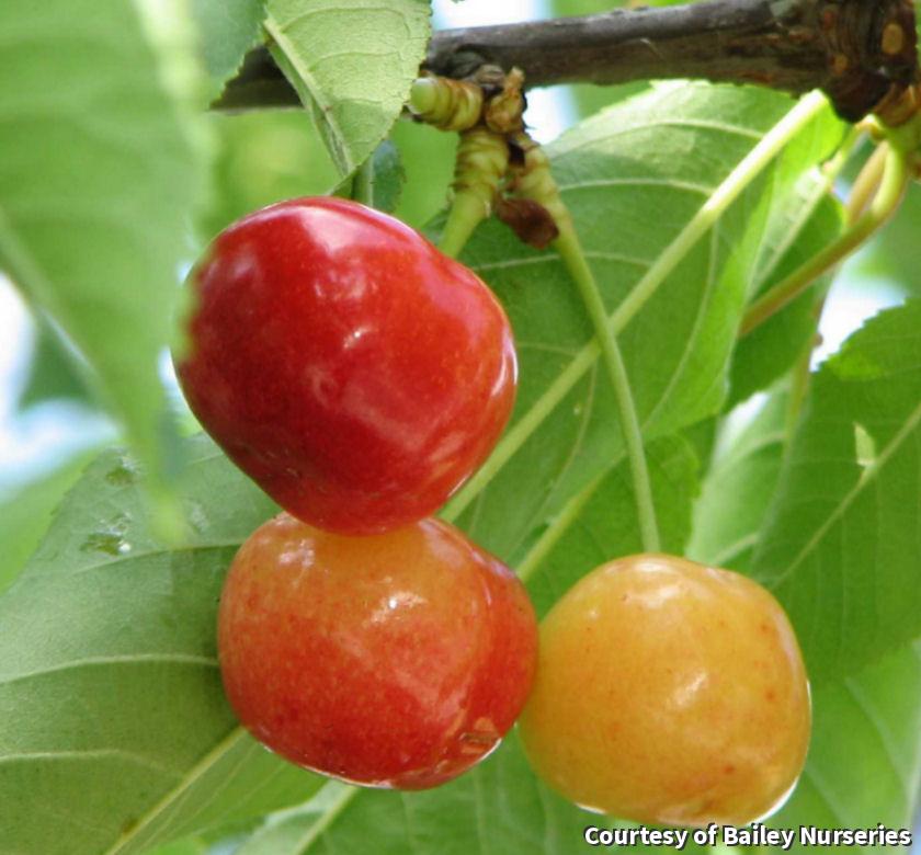 Semi-dwarf cherry tree with delicious golden yellow fruit with a red blush. Fruit is sweet and richly flavored. White blooms in spring. Grow with another sweet cherry variety for cross pollination. Ripens in late June to early July.