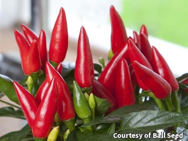 This pint-sized pepper plant is perfect for a windowsill with decorative, upright, conical peppers and small foliage. Spicy fruit ripens from green to bright red and is great for adding to a stir-fry.