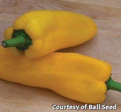 These huge thick walled 8-10" Marconi peppers are golden yellow with a crispy sweet flavor. The strong plants hold the steady crop of hefty fruits for easy picking.