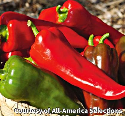 Italian type pepper that are shaped like a bull’s horn. They turn from green to deep red, increasing their vitamin content as they redden. For best flavor, pick fruits at their deepest red hue for a richly sweet flavor.