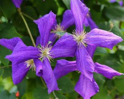 This is a late flowering variety with large, red-purple flower from mid-summer to late fall. It is vigorous and long blooming. It will easily climb on large trellises, arbors and fences and may be trained to grow up trees. Pruning group 3.