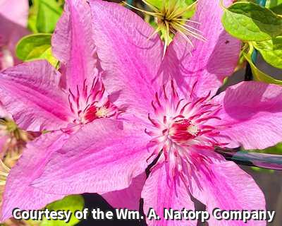 A stunning clematis with large flowers with a deep, two toned rose color. As the flowers mature, they take on more shades of pink and lavender-pink. Place this one where the blooms can be enjoyed from June through fall. Pruning group 2.