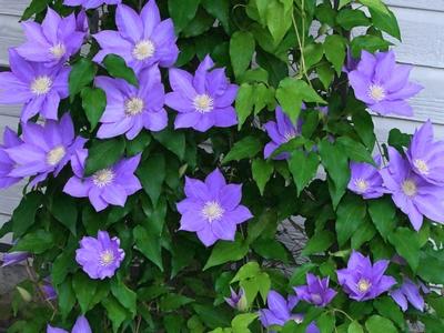 Lovely lavender to light blue flowers have stuble wavy petals. It is long blooming in that it blooms first on last years wood and then, again on the new growth. Add to arbors, fences and posts for a fabulous spring display. Pruning group 2.