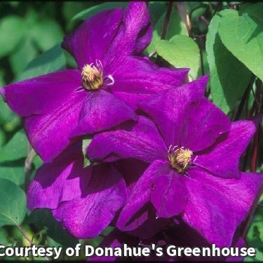 A prolific bloomer with deep purple blooms that darken toward the edges. It blooms heavily in June and continues sporatically into fall. A beautiful, colorful addition to trellises, fences and pergolas. Pruning group 3.