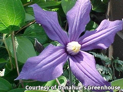 Rich bell-shaped indigo blue flowers open to a 5 -6" flower. It makes an interesting cut flower. Blooms July, August and September. Clematis generally prefer full sun, but this hybrid has some tolerance for part shade. Pruning type 3.